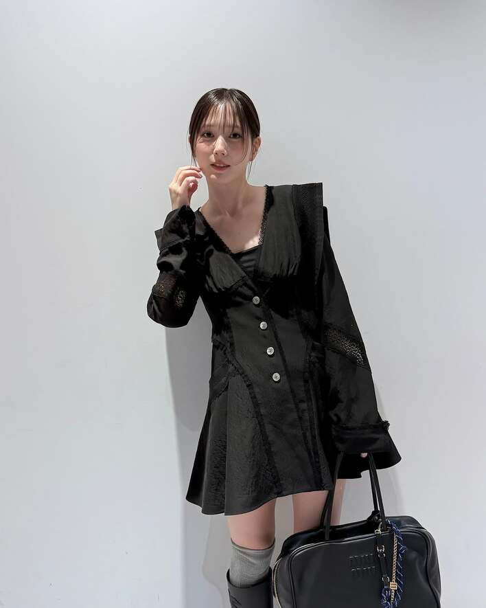 写真を見ると、髪を1つにまとめ、黒のミニ丈ワンピースを着た大人っぽい姿を披露。首もとが開いたデザインで、デコルテやほっそりとした首、そしてカメラを見つめる姿に思わずドキッ!
