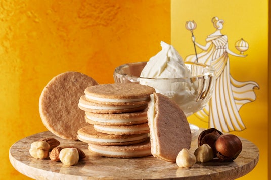 【DROS】から新定番スイーツの誕生です!ヘーゼルナッツとプラリネ、沖縄宮古島の雪塩を練り込んだクッキー生地に、マスカルポーネ風味のチョコ※をサンドしました。塩味がやさしく引き立てる甘さとの繊細なバランスは、ついもう一枚と手を伸ばしたくなる味わいです。冷蔵庫や冷凍庫で冷やすことで、パリッとした心地よい食感とともに、涼やかな味わいをお愉しみいただけます。