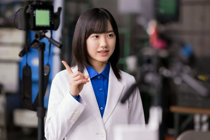 合成後のイメージを浮かべながら「クリアデュー研究員」に扮するの芦田は、「うなずきをもう少しだけ深く」「ひとさし指を立てるシーンはコンタクトレンズが指先にのっているイメージで」など監督からの細かなリクエストに、「はい!」と終始ハキハキと受け答えながら的確に対応。