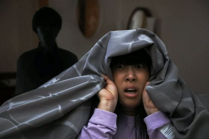 その夜、ゆめっちが眠りにつこうと電気を消すと、突然ひどい耳鳴りに襲われる。視線を感じ、玄関の方を見てみると、黒い人影のようなものが…。しかし、急いで電気をつけて、再び玄関の方を見てみると、誰もいない。そして、その翌晩も電気を消すと黒い人影が見え…。