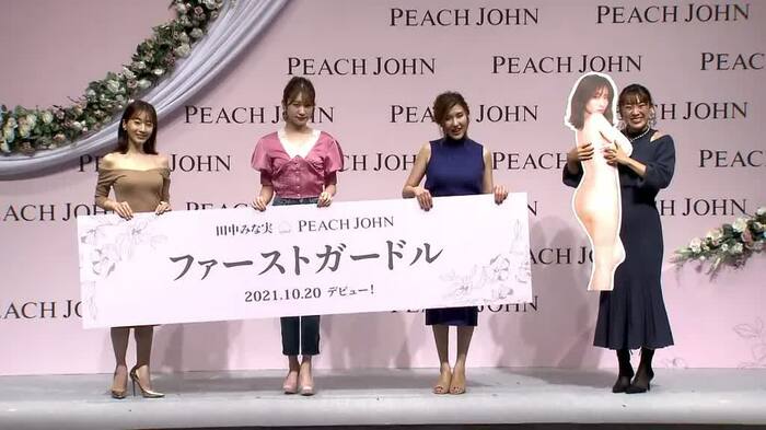 10月20日(水)、下着ブランド「PEACH JOHN」の新商品発売記念イベントが行われ、 プロデュースを務めた田中みな実と、ゲストの吉田朱里、フワちゃん、納言の薄幸が登壇した。