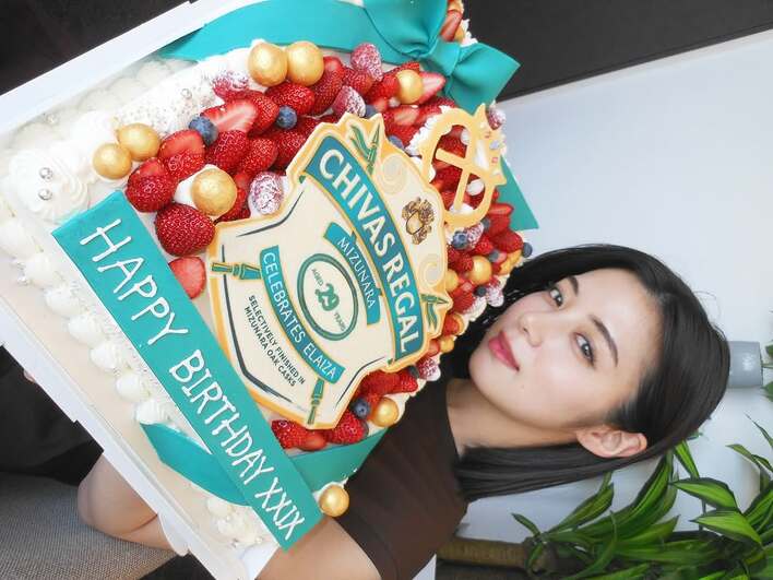 4つ目は、自身が出演する映画のスタッフからサプライズでもらった、イチゴソースがかかったラブリーなケーキ。唇の形をしたバースデープレートには、マネージャーさんがホワイトカラーで「ELAIZA」と名前を書いてくれたんだとか。