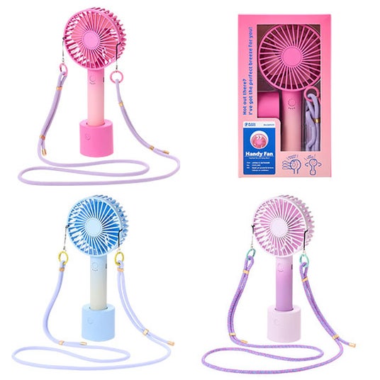 PLAZA BASICS ハンディファン スタンダードタイプ 回転台付き(右上から時計回りに ライトブルー、ライトパープル、ピンク) 各3,740円