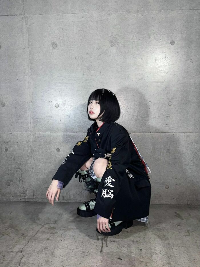 さらに、“ヤンキー座り”でカメラを見つめるショットでは、腕にハッキリと「愛脳」の刺しゅうが!