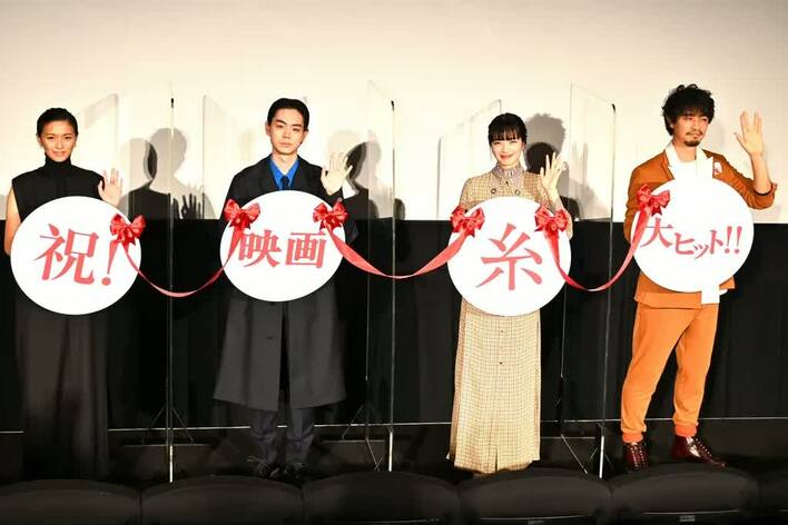 8月21日(金)映画「糸」の公開初日舞台挨拶が行われ、菅田将暉、小松菜奈、斎藤工、榮倉奈々が登壇し、全国111の映画館で上映前に生中継された。