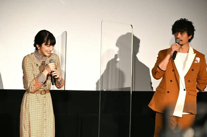 冒頭の挨拶で菅田は「劇場に今日は来てくださり、ありがとうございます」と感謝を述べ、小松は「この作品が1人でも多くの方に届いたらいいなと思います。今日は初日と言うことで、昨日眠れませんでした。そわそわしちゃって、1時間ごとに目が覚めちゃって」と明かした。