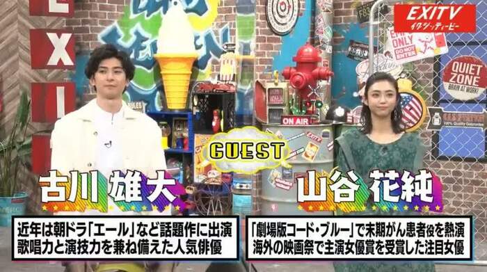 前週に引き続き、ゲストとして古川雄大と山谷花純が登場。実はEXITと山谷は初対面ではなく、1度会ったことがあるそうで、山谷から「所属事務所の晴れ着お披露目会に、お2人がシャンパンのジュレが入ったいちご大福を差し入れするためだけに来た」と振り返る。