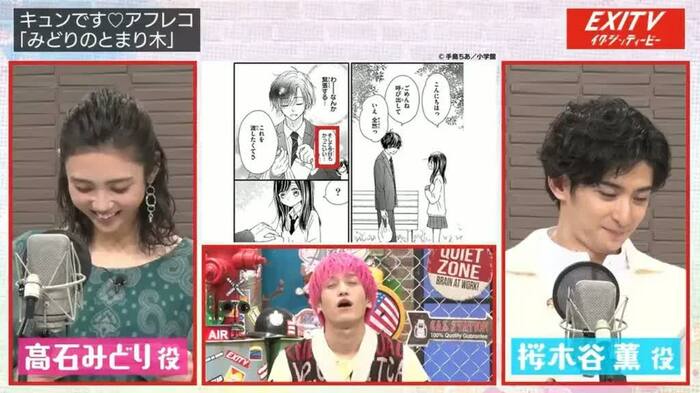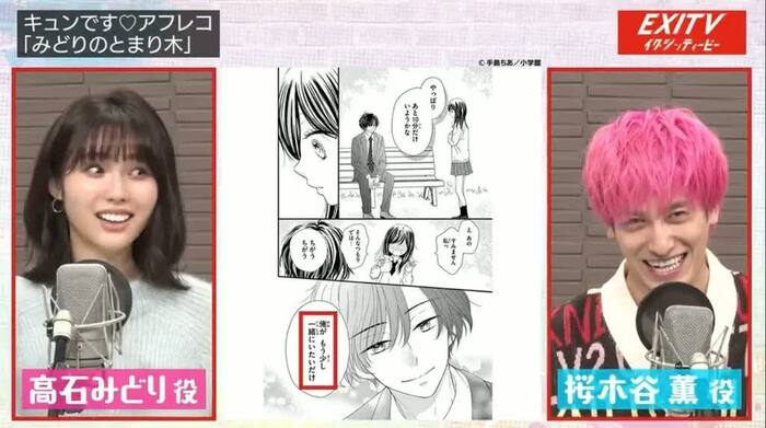 今回は、女子高生とサラリーマンの新感覚禁断ラブストーリー「みどりのとまり木」(手島ちあ/小学館)に挑戦することに。組み合わせの抽選の結果は、古川雄大&山谷花純、兼近&アシスタントの「Seventeen」専属モデルの秋田汐梨となった。