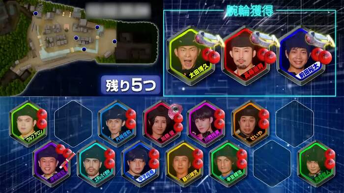 その後、女子格闘家のRENAやボディビルダーの横川尚隆が撃破されていくなか、続いて「強制失格を回避せよ」というミッションが開始。エリア内にまかれた腕輪をゲットできたプレーヤー8人のみが生き残り、腕輪をつけたプレーヤーを撃破できれば腕輪を奪い取れる。
