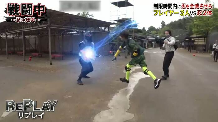ゲームが終盤に差し掛かると、この時点でプレーヤー5人(ウルフ、髙藤、土井、前田、矢野)VS忍3体に。終了まで残り5分を切り、「たまらん、この緊張感!」(髙藤)と戦闘意欲が高ぶるなか、土井の「挟み撃ちしましょう!」の呼びかけで、5人は二手に分かれラストバトルを開始。