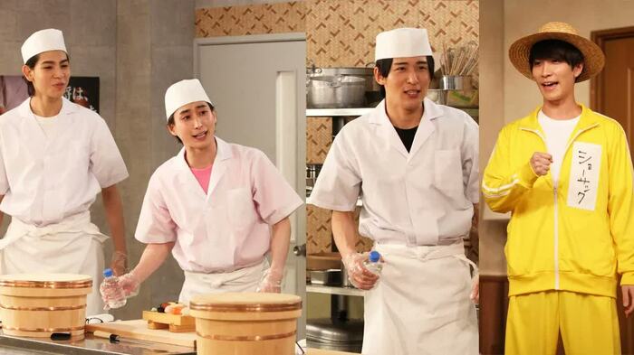 寿司職人養成学校コントでは、彼らと同じ生徒役の伊達みきお(サンドウィッチマン)と共に寿司の作り方を学んでいくのだが、富澤演じる超“チャラい”講師に振り回されまくる。大事なことを全く教えてくれない講師にイライラし始める生徒(伊達)だが、Snow Man演じる3人の新入りは、真剣にメモを取りつつも空気の読めない発言をしたり、炊き立てのシャリの湯気で眼鏡が曇りよたよたしたり…。