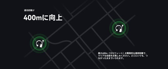 最大通信距離は400メートルに対応しており、広大な撮影現場でも安定した接続が可能です。