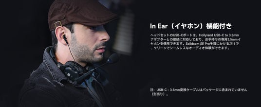 Solidcom SE ProはUSB-Cポートを搭載しており、Hollyland製の「USB-C - 3.5mmアダプター」(別売)を使用することで、3.5mmイヤホンとの接続が可能です。