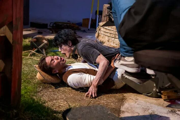 新CM「撮影の合間に」篇は、撮影現場でゲームを起動すると突如ゾンビの大群が登場する設定。狩野はゾンビに襲われ、ひとりはゾンビを銃で迎え撃つという役どころ。