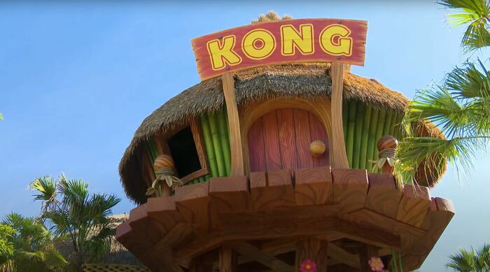 ここでは、人よりも大きなドンキーコングと写真撮影できる場所も!ゲームの世界から飛び出してきたような、ドンキーコングとの記念写真は思い出に残ること間違いなしですね。