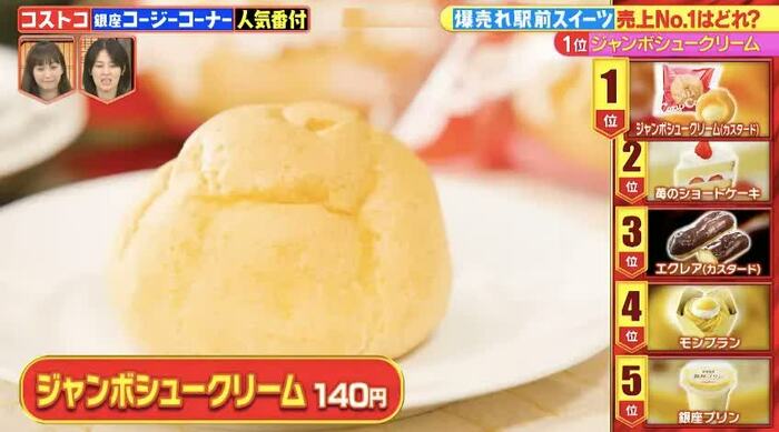 1位に輝いたのは、「銀座コージーコーナー」の顔とも言える「ジャンボシュークリーム」。