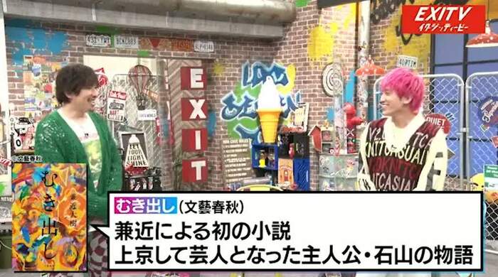 EXITのりんたろー。と兼近大樹が、10月28日(木)に放送された『EXITV~FODの新作・名作をPon!Pon!見せまくり!!~』(フジテレビ)で、発売されたばかりの兼近の初の小説「むき出し」(文藝春秋)について盛り上がった。
