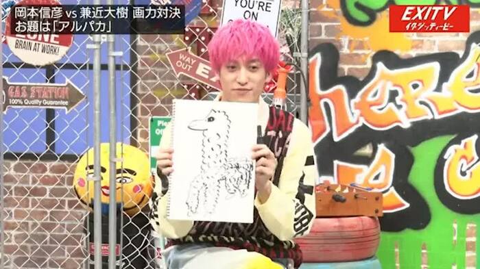 続いて、岡本が披露したのは、「アルパカ」の文字をなぞらえて描かれた別の生き物。「薄目で見てもらえば」と自信満々で披露する岡本だったが、「アート入れてきちゃったねぇ」と審査をするりんたろー。は腕を組んで悩んでしまう。