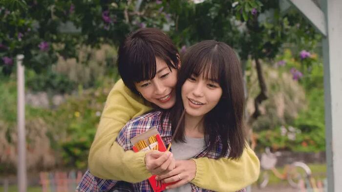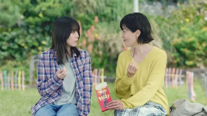 ひとり暮らし先から久々に帰省した娘役の南は、母親役の宮沢と、実家の近所の公園で待ち合わせ。2人でゆっくり会話と言えば、いつものように息ぴったりでポッキーを食べ進めるうちに心が通っていく。