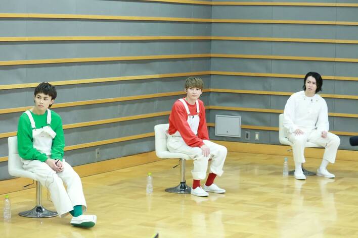 「(年末に行う超特急のライブに向けて)気合いを入れるためです」とユーキが答えると、井上は続けざまに「年中(赤髪)はあかんの?」。ユーキは「そこが一つ問題で…」と話しはじめ、カイも「(ユーキから)ピンクの汗が出るんです」とライブリハーサル中の彼の様子について明かす。