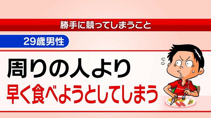 向井さんは「スーパーでは誰よりも早く精算したいので、地下駐車場で相手に譲ったふりをして先に出たりする」と苦笑し、竹山さんは「町を歩いていると競馬のイメージで、『あのオジサンを外からオレが差す!』と思ってしまったり、サウナでも『あの人が出るまで出ない』と勝手に決めたりしてしまう」と共感を。