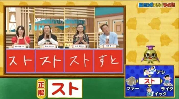 正解は「スト(ファースト・アシスト・ストライク・ストイック)」。見事に全員正解!