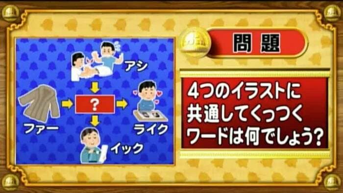 次は、くっつきワードの問題。次の4つのイラストに共通してくっつくワードを答えよ。