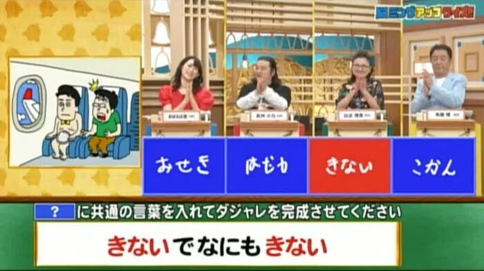 正解は「きない(機内で何も着ない)」。比企1人が正解!