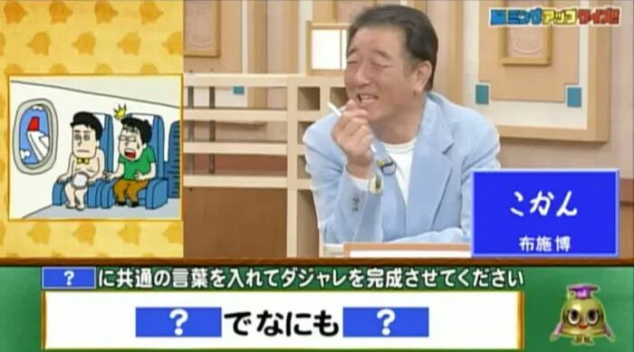 布施の答えは、「こかん」。いやいや、たしかに股間が気になるけども不正解!
