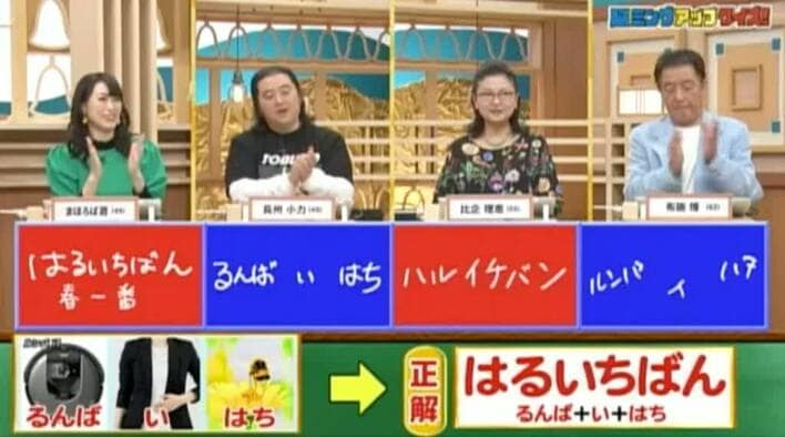 正解は「はるいちばん(るんば+い+はち)」。まほろばと比企の2人が正解。