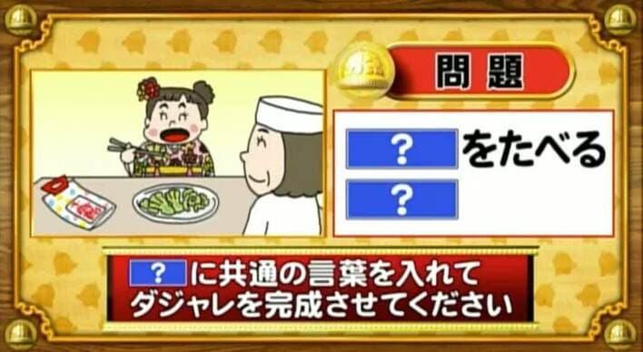 最初は「脳ミングアップクイズ」から、ダジャレ穴埋めの問題。「?」に共通する言葉を入れてダジャレを完成させよ。