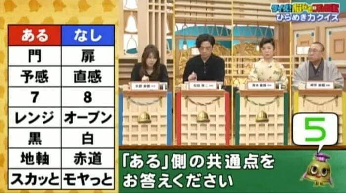 最後は、あるなしクイズ。次の単語の「ある」側の共通点を答えよ。