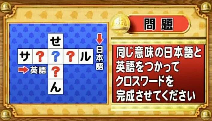 最初は「脳ミングアップクイズ」から、日本語&英語クロスワードの問題。同じ意味の日本語と英語を使い、次のクロスワードを完成させてください。