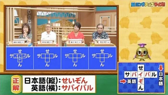 正解は「せいぞん」と「サバイバル」。今回は残念ながら正解者ナシ。