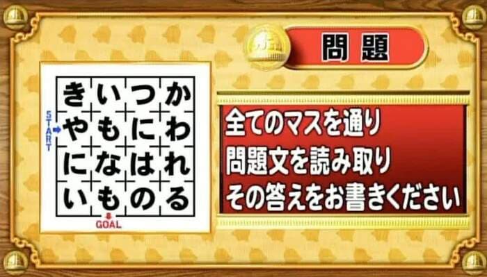 最初は「脳ミングアップクイズ」から、迷路クイズ。すべてのマスを通って問題文を読み取り、その答えを述べよ。