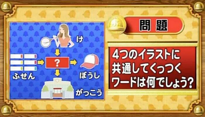 最後は、くっつきワードの問題。次の4つのイラストに共通してくっつくワードは何でしょうか?