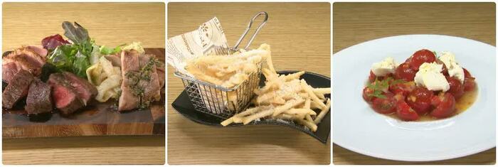 厳選された牛・黒豚・鴨肉が贅沢に一皿に盛られたこちらカルネミスト(5000円)は、低温ローストで仕上げ、びっくりするほど柔らかな食感。試食したウエンツ瑛士も思わず「柔らか!5秒前まで『ナイフないじゃん!』って怒る予定だったんですけど(笑)、いらない。うまい」と絶賛。