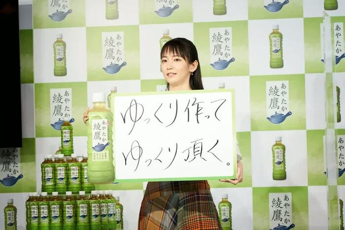 イベントの終盤で、綾鷹のブランドアンバサダーとして、メッセージを求められた吉岡は「あやかた…」と大事なところで噛んでしまうという、まさかのミス。この様子に濱家は「1番噛んだらあかんとこですよ。ここがかわいいんでしょうね。本当にチャーミング。今ので心臓『キューン』ってなった男子が死ぬほどいますよ!」山内は「多分、親方と混ざったんでしょうね。会場に親方っぽい人がいたから」と優しくフォローしていた。