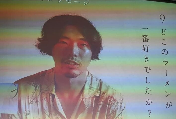 まず、スクリーンに映し出された柄本は「撮影当時ラーメンにハマっていたらしいですが、どのラーメンが1番好きでしたか?」と吉沢に質問。