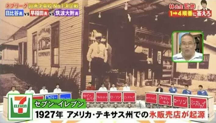 「コンビニエンスストアの国内の店舗数」を答える問題では、地理の村瀬哲史先生が解説を加えてくれた。国内の店舗数No.1のセブン-イレブンは、昔は何屋さんだったのか、ご存知だろうか?