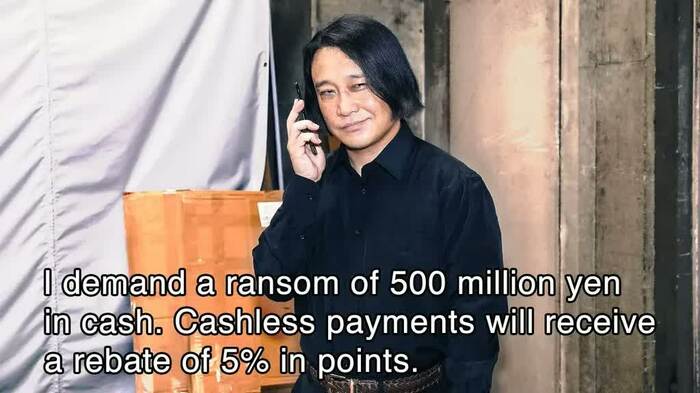 “I demand a ransom of 500 million yen in cash. Cashless payments will receive a rebate of 5% in points.”