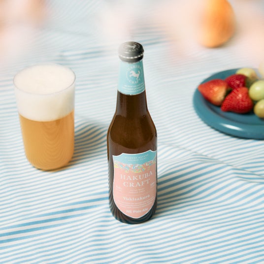 クラフトビールのスタイルはニューイングランドペールエール。控えめな苦味とアルコールに、ホップ由来のフルーティーな香りを加えています。冬の名残を感じさせる残雪と、春の象徴である桜。この二つの季節が共存する“白馬らしさ”を、味わいに込めた1本です。