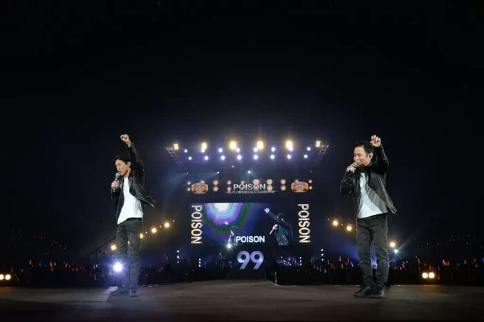 ステージ上で向き合った2人は、本イベントのタイトルコールを言うと同時に、反町隆史の「POISON~言いたい事も言えないこんな世の中は~」を熱唱。