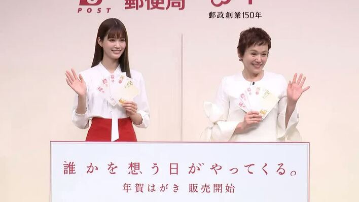 11月1日(月)、都内で「2022年用お年玉付年賀はがき」の販売開始セレモニーが行われ、ゲストに大竹しのぶと「めるる」こと生見愛瑠が登壇した。