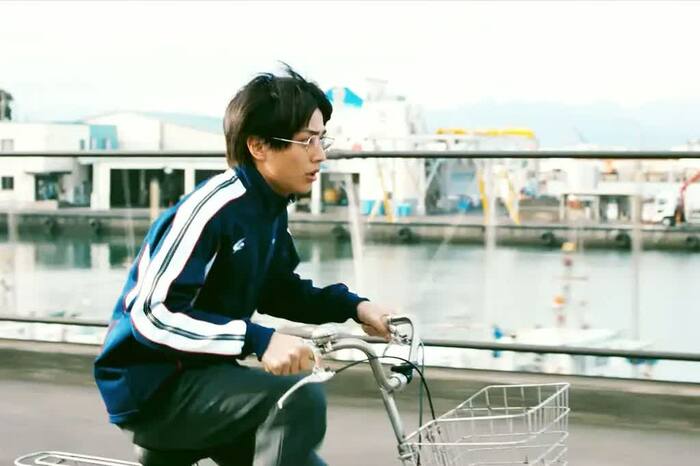 自転車の走行シーンは、一切CGなしで制作された本作。もちろんこのシーンも永瀬自身が斜度20度の激坂を何度も自転車で登って撮影されている。笑顔で歌いながら坂道を登るという前代未聞の過酷な撮影だが、それを感じさせない永瀬の演技力は必見だ。