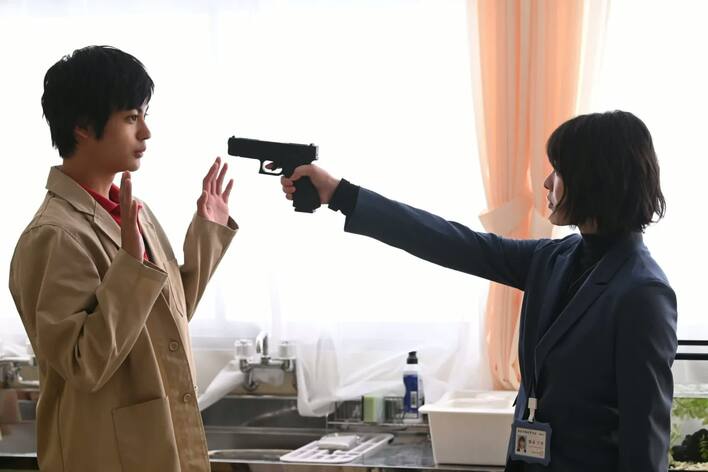 で、気を取り直して今回のあらすじ…。遠藤先生(神尾楓珠)の“銃撃動画”が拡散し学園中の噂となり、“●にたい(●=塗りつぶされてる)”…“死にたい”!?というSOSメッセージが発見され、その筆跡で浮かび上がった3人の生徒…、そこへ遠藤先生の知られざる過去が明らかとなる…という物語。…なんだけど、これらの要素、前回の予告で見た時、嫌な予感したんすよね…。だって、そもそも、遠藤先生の“銃撃動画”=「え?人殺しだったの!?」ってのがさ、そんなわきゃないしさ、“動画”が“拡散する”ってのがもうね、辟易だもんね。そんなわきゃないものが、拡散されて、大騒動ってさ、茶番じゃん。で、そういう大げさな演出、見飽きてるじゃん。でもって、“●にたい”っていうSOSメッセージもさ、キャッチーではあるけどさ、きっと“●=死”ではない、くだらないオチ待ってんだろ?って想像しちゃうじゃん?、で、“浮かび上がる3人の生徒”ってさ、このドラマ、犯人捜しとか、そういうドラマじゃないやん?で、トドメが “遠藤先生の過去”だよ?ミステリアスな主人公のドラマにおいて、主人公の過去ってのは最もいらない描写じゃん。ご法度じゃん。ミステリアスの内訳教えてどうすんの?ってことじゃん。視聴者に想像の余地、残せやってのがミステリアス主人公の鉄則じゃん。でもってしかも、その“主人公の過去”エピソードを、1話から担当してるわけじゃない、第5話初登場の、ポッと出のアッキーが書くわけじゃん?もうね、取って付けてる感、出るやん?絶対出るやん!?アッキーがぶち壊すやん!?…って、そう、思ってたわけですよ…。(『顔だけ先生』スタッフにも、アッキーにも失礼すぎる)いやー、だけど、まあ、それを、見事、全て、ひっくり返していただきました!!秋山先生!ブラボッ!!!(2回目)