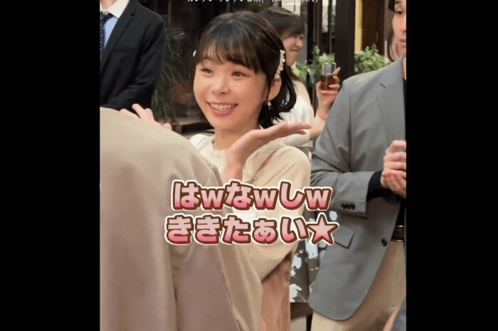 趣里さんの可愛らしいこの動画に、SNSは「面白すぎ」「趣里さんがめっちゃ可愛すぎる」「わたしも誰ってツッコんだww」「ここの趣里ちゃんかわいすぎて、リピートしまくってる」「芝居と丸文字のテロップが合ってるw」「ぶりっ子振り切っててよかった!」「上目遣いがキュート♡」などと盛り上がりを見せました。