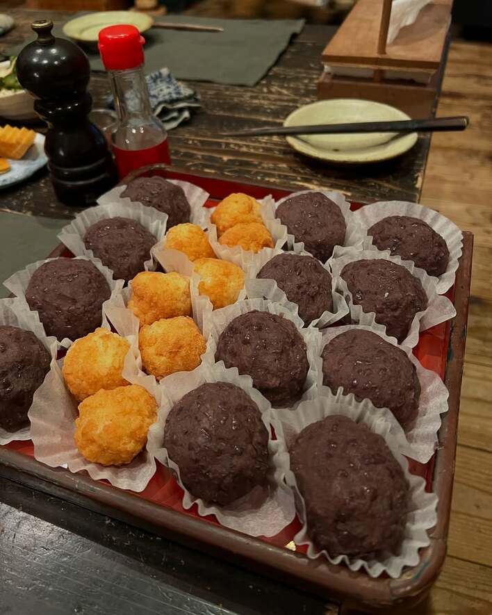 そして四角いお盆に乗せられた大量の手作りおはぎも!
