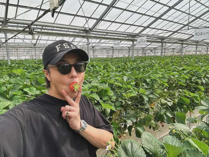 いちご狩りを満喫したTAKAHIROさん。充実したプライベートを過ごせたようです。
