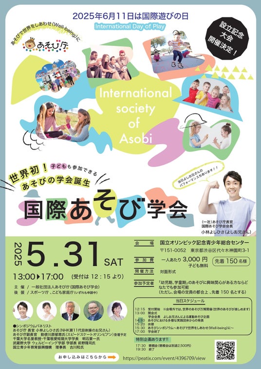 6月11日は、国連が定める「国際あそびの日」。(一社)あそび庁は、5月31日(土)に日本初のあそびの学会「国際あそび学会」を開催し、国連が定める「国際あそびの日」を広め、あそびに対する機運を高めます。